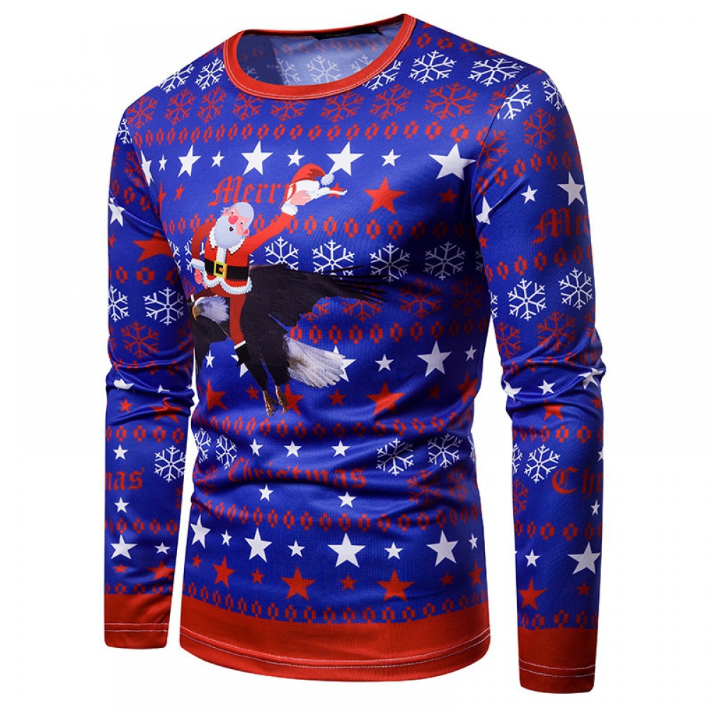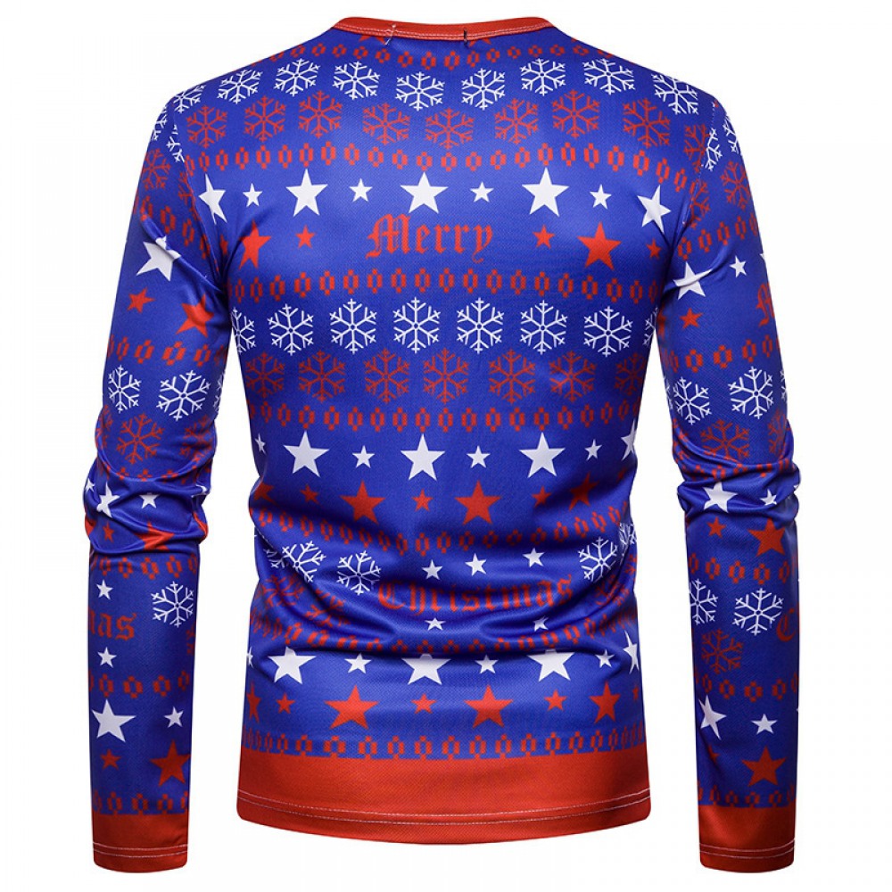 New 3D Personality Printing Fashion Men's Christmas Santa Pattern Long-Sleeved T-Shirt