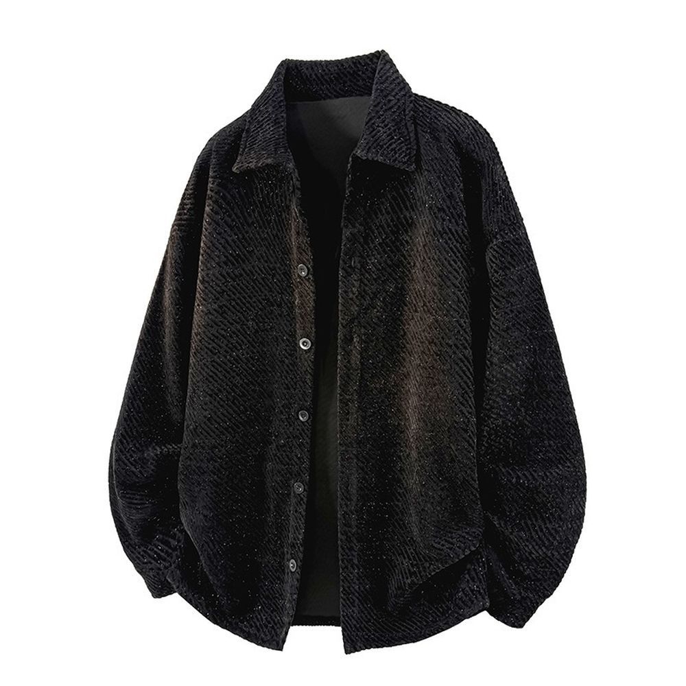 Men's Textured Long Sleeve Shirt Plus Velvet Lapel Knitted Casual Cardigan Jacket