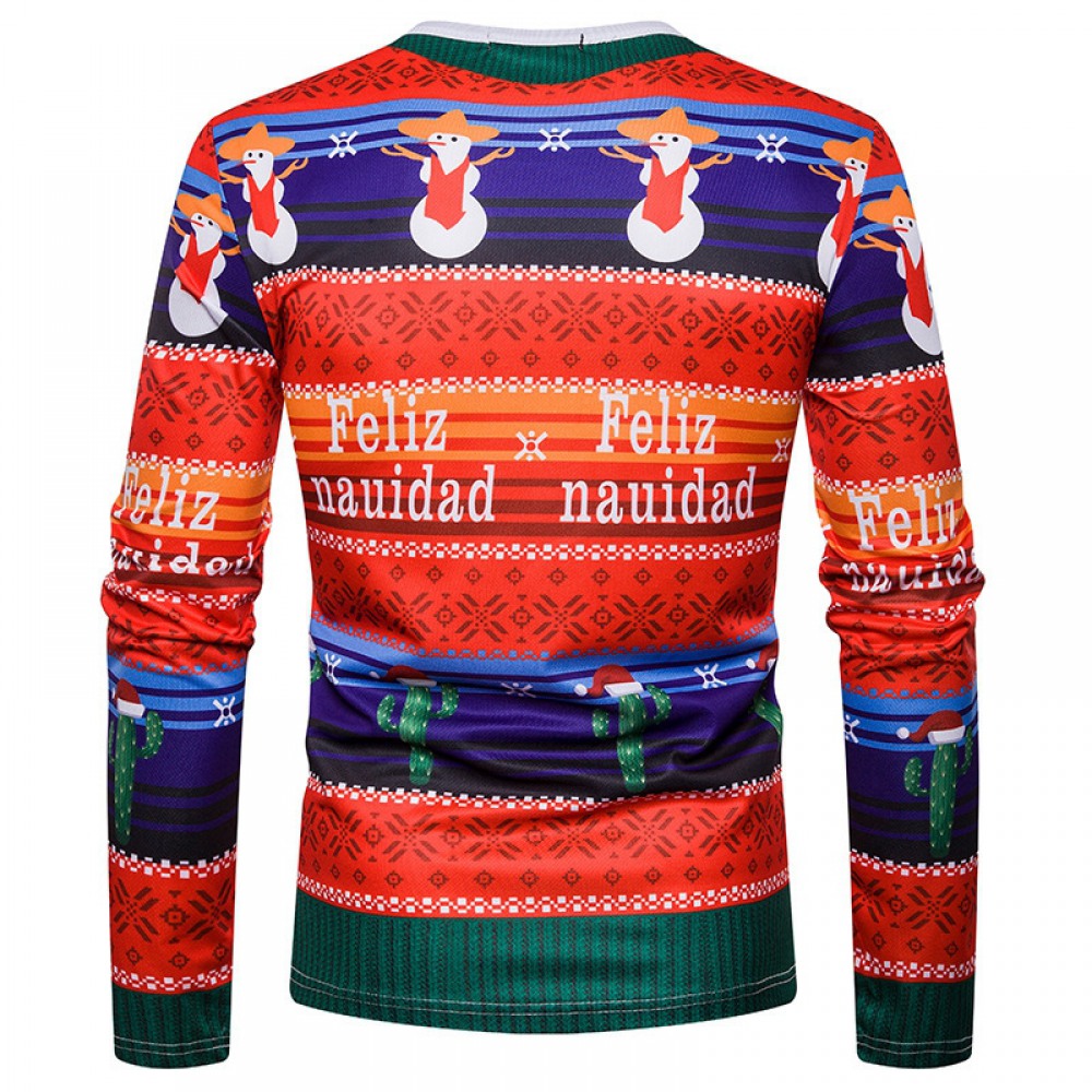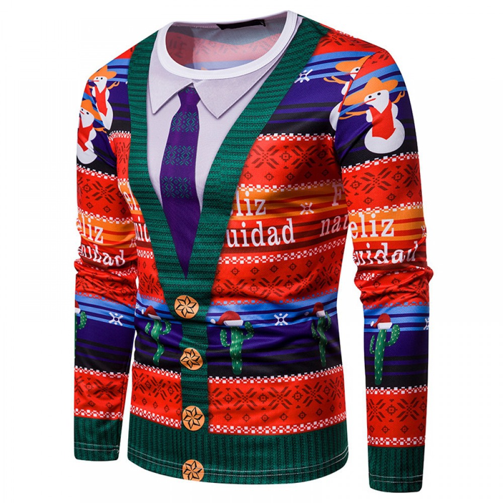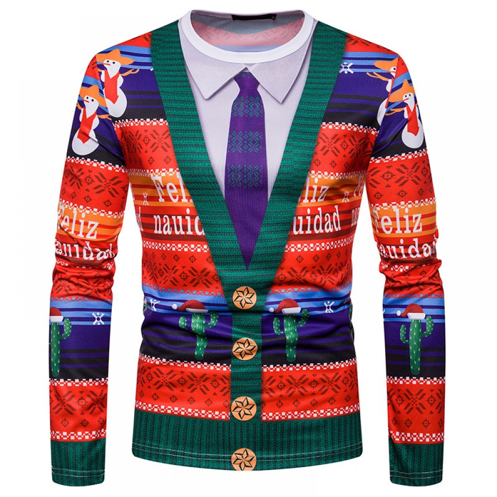 New 3D Personality Printing Fashion Men's Christmas Long-Sleeved T-Shirt