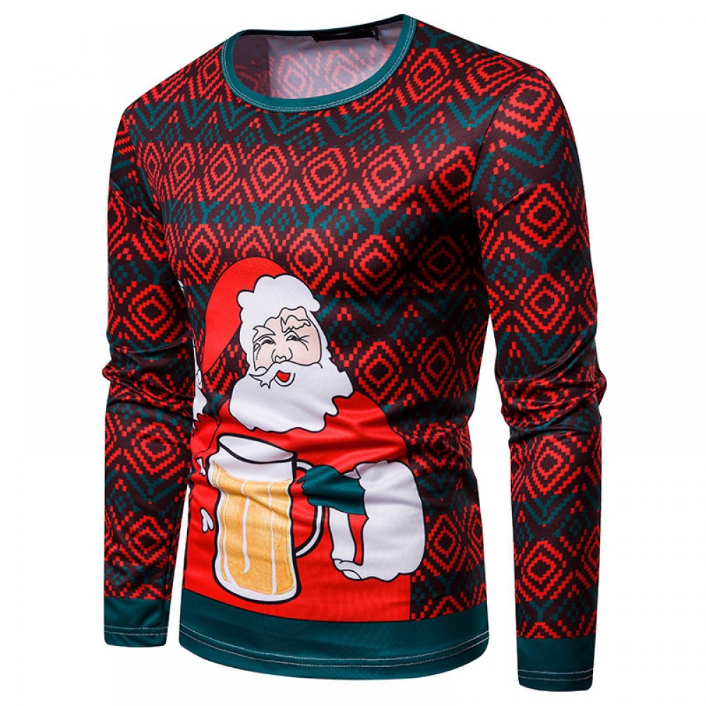 New 3D Personality Printing Fashion Men's Christmas Santa Pattern Long-Sleeved T-Shirt