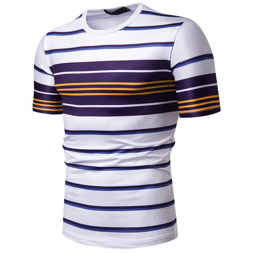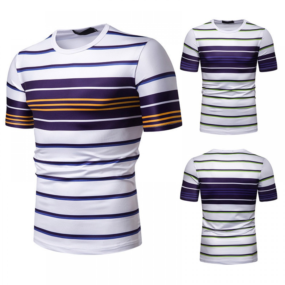 New Summer Men's Short-Sleeved T-Shirt Contrast Striped Slim Casual T-Shirt
