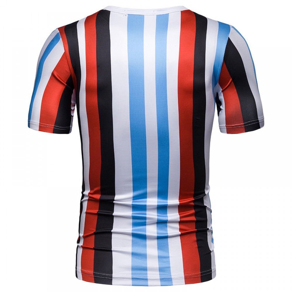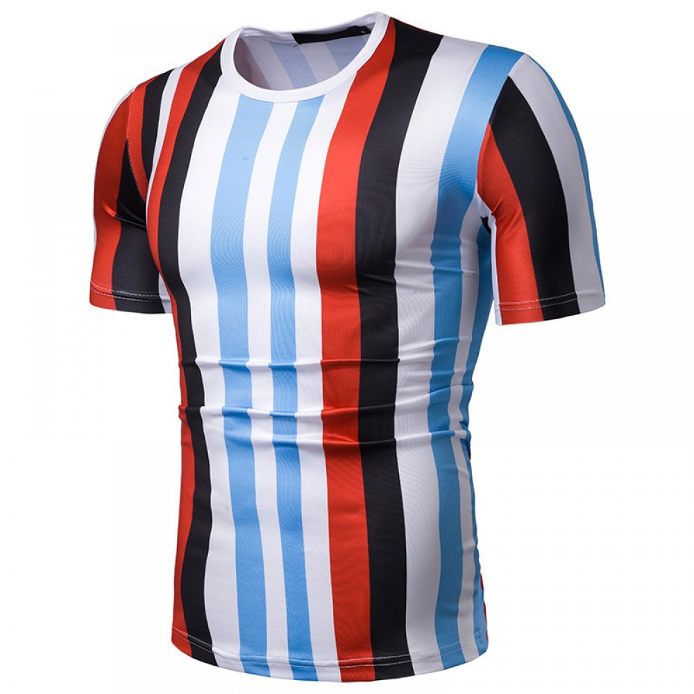 New Summer Men's Short-Sleeved T-Shirt Contrast Striped Slim Casual T-Shirt
