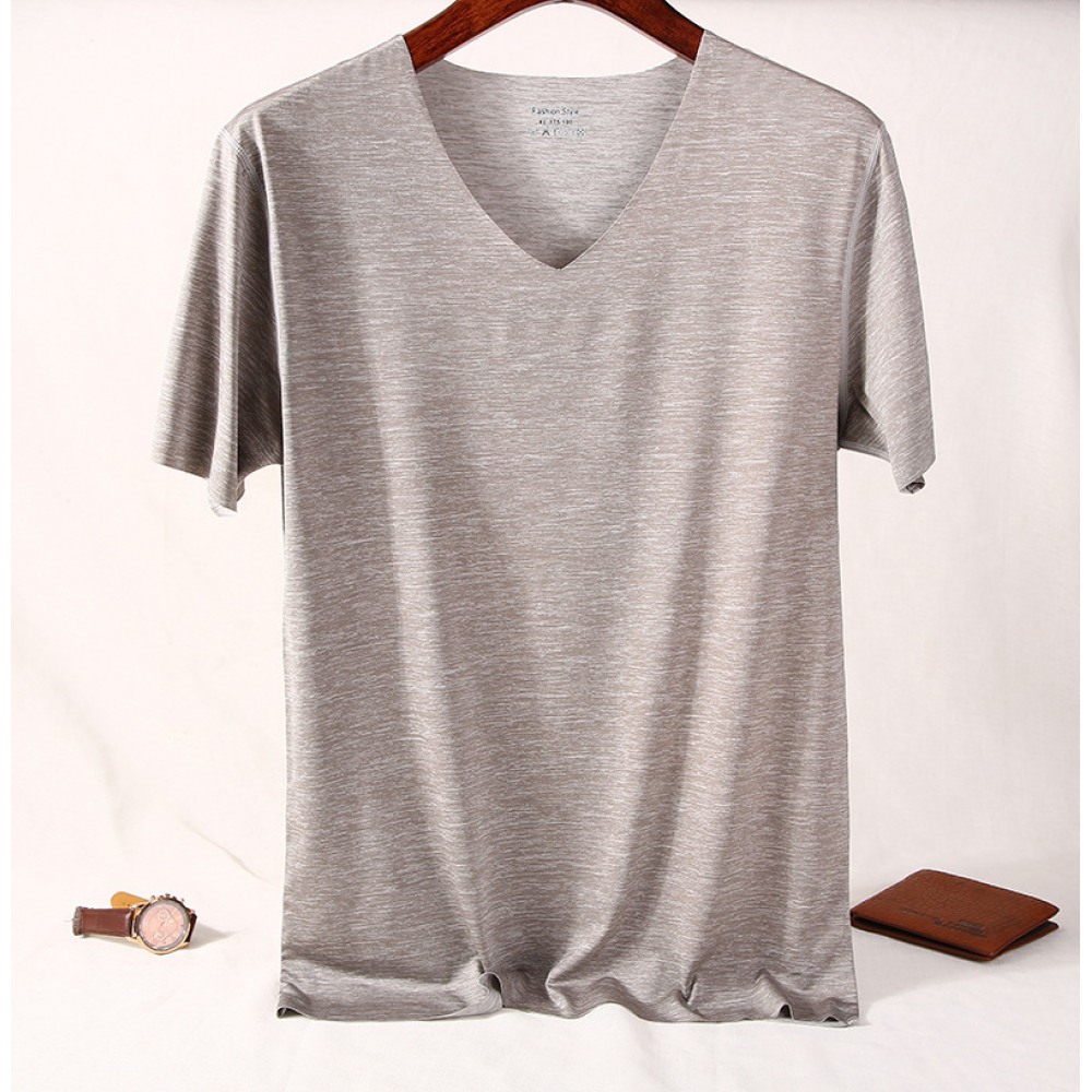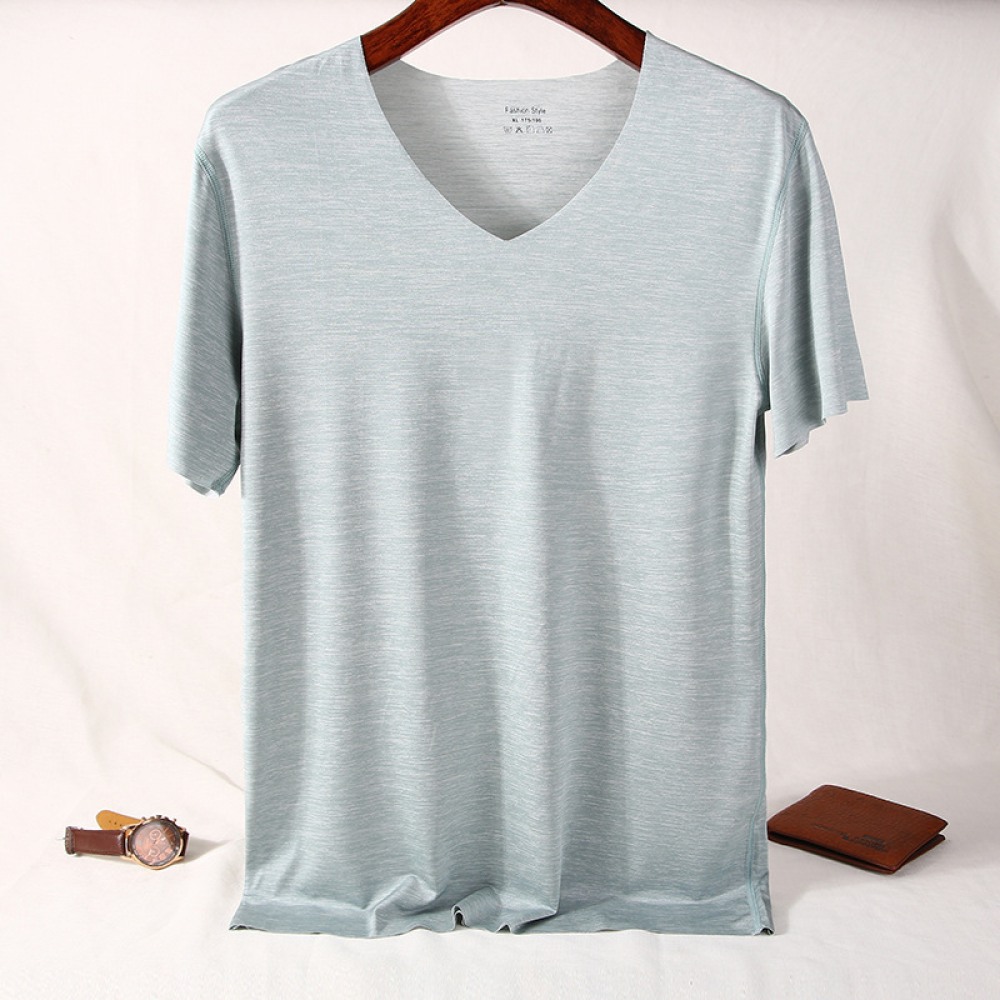 Pure Color V-Neck New Year Summer New Simple Seamless Ice Silk Men's Quick-Drying Short-Sleeved T-Shirt