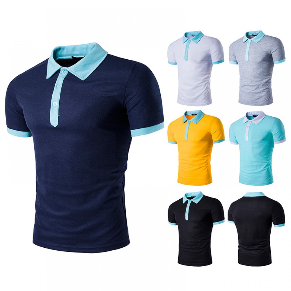 Summer New Men's Personality Hit Color Lapel Short-Sleeved T-Shirt