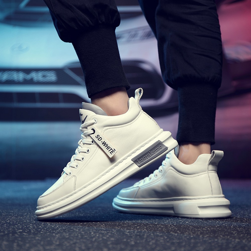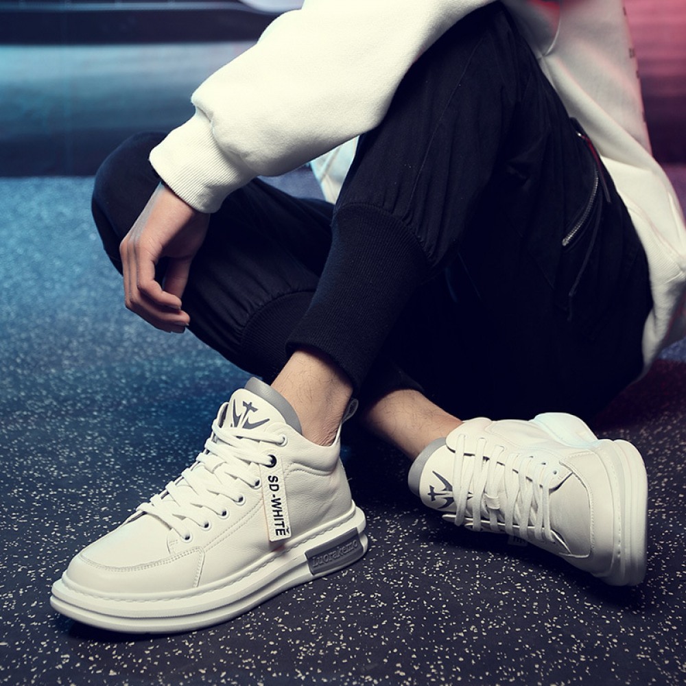 Men's Spring New Trendy Leather Casual White Sports Shoes