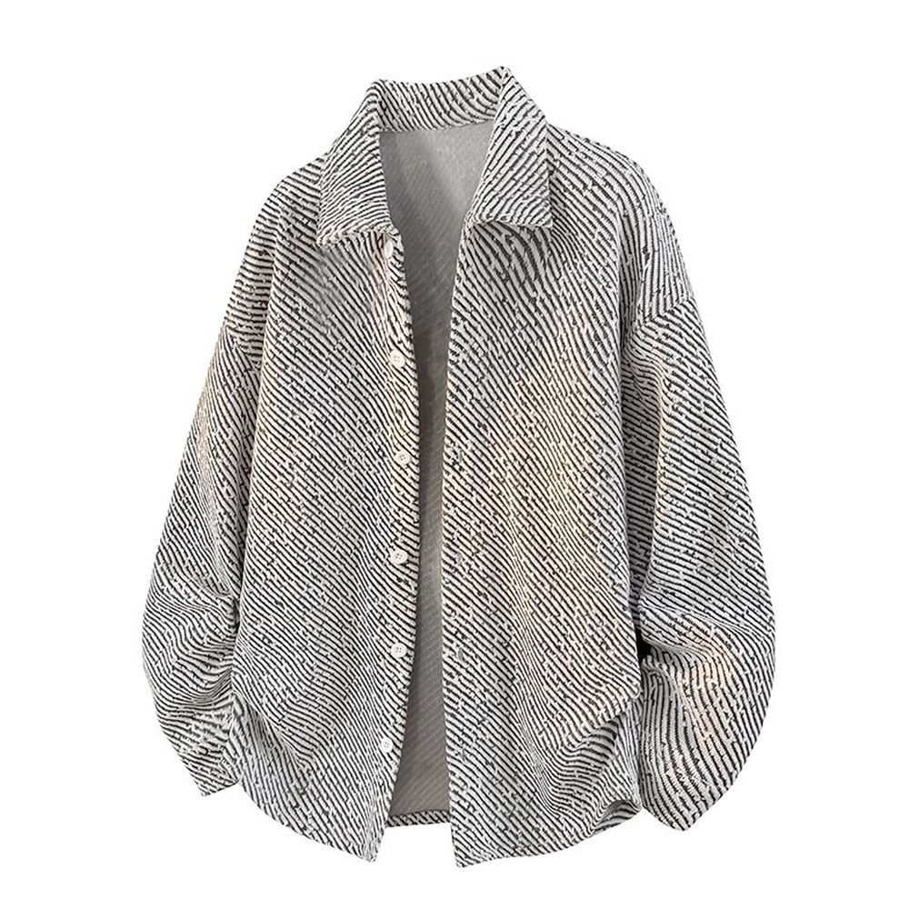 Men's Textured Long Sleeve Shirt Plus Velvet Lapel Knitted Casual Cardigan Jacket