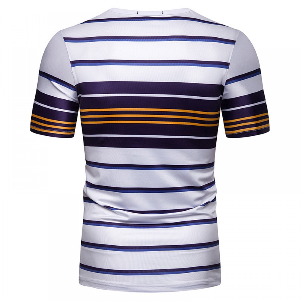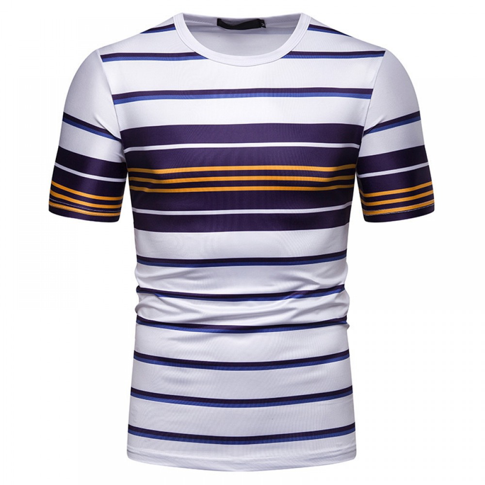 New Summer Men's Short-Sleeved T-Shirt Contrast Striped Slim Casual T-Shirt