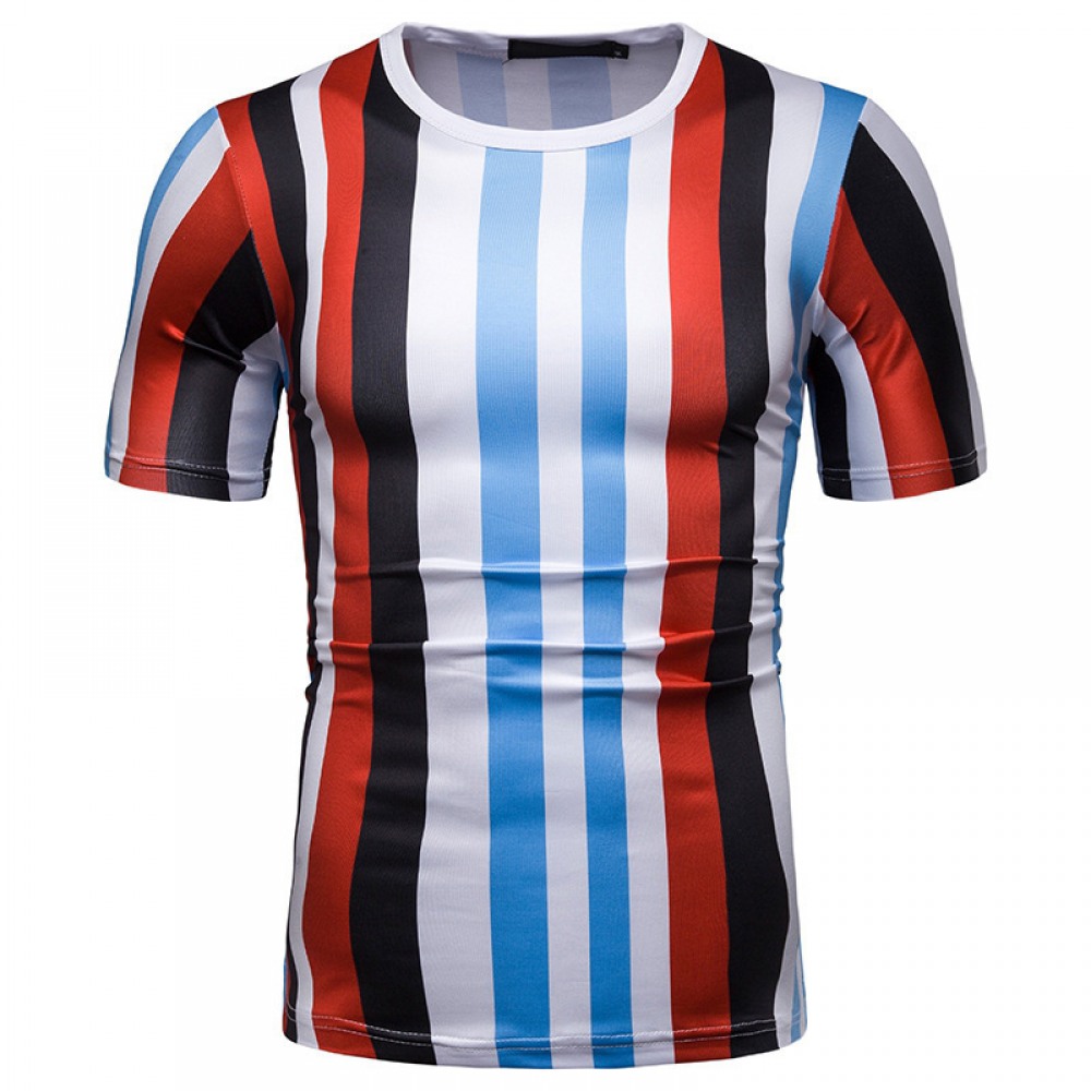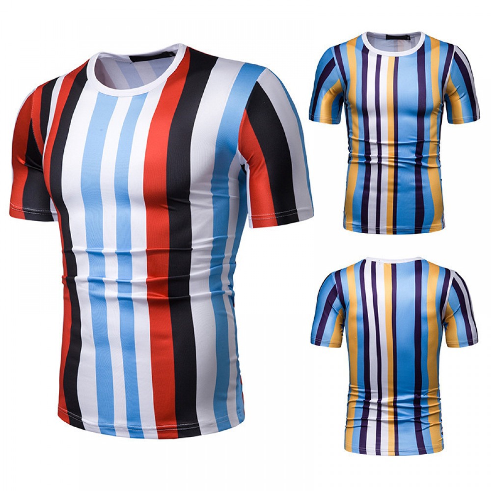 New Summer Men's Short-Sleeved T-Shirt Contrast Striped Slim Casual T-Shirt
