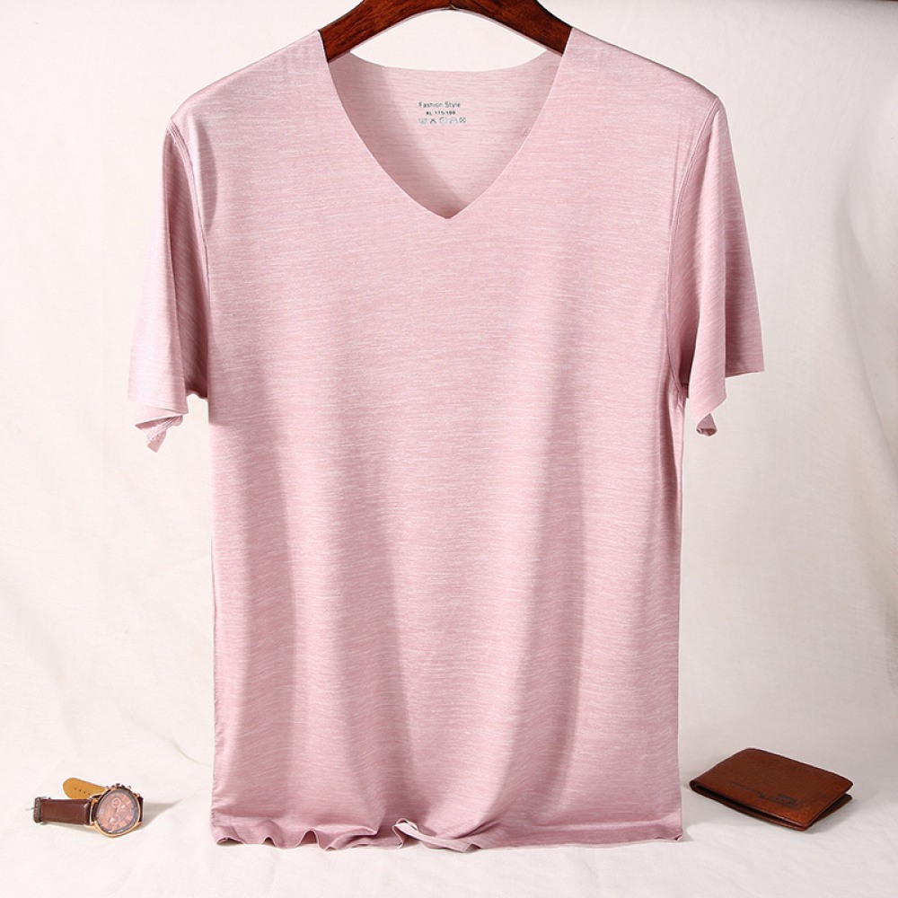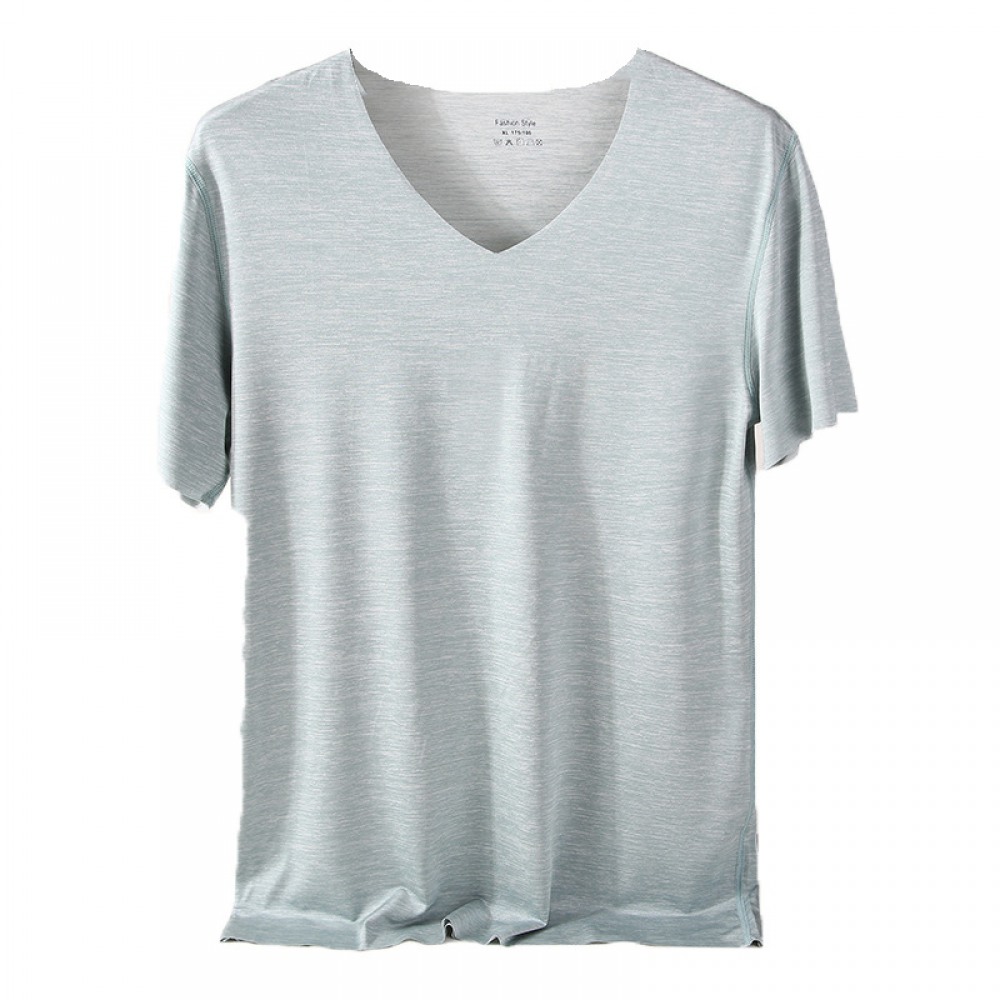 Pure Color V-Neck New Year Summer New Simple Seamless Ice Silk Men's Quick-Drying Short-Sleeved T-Shirt