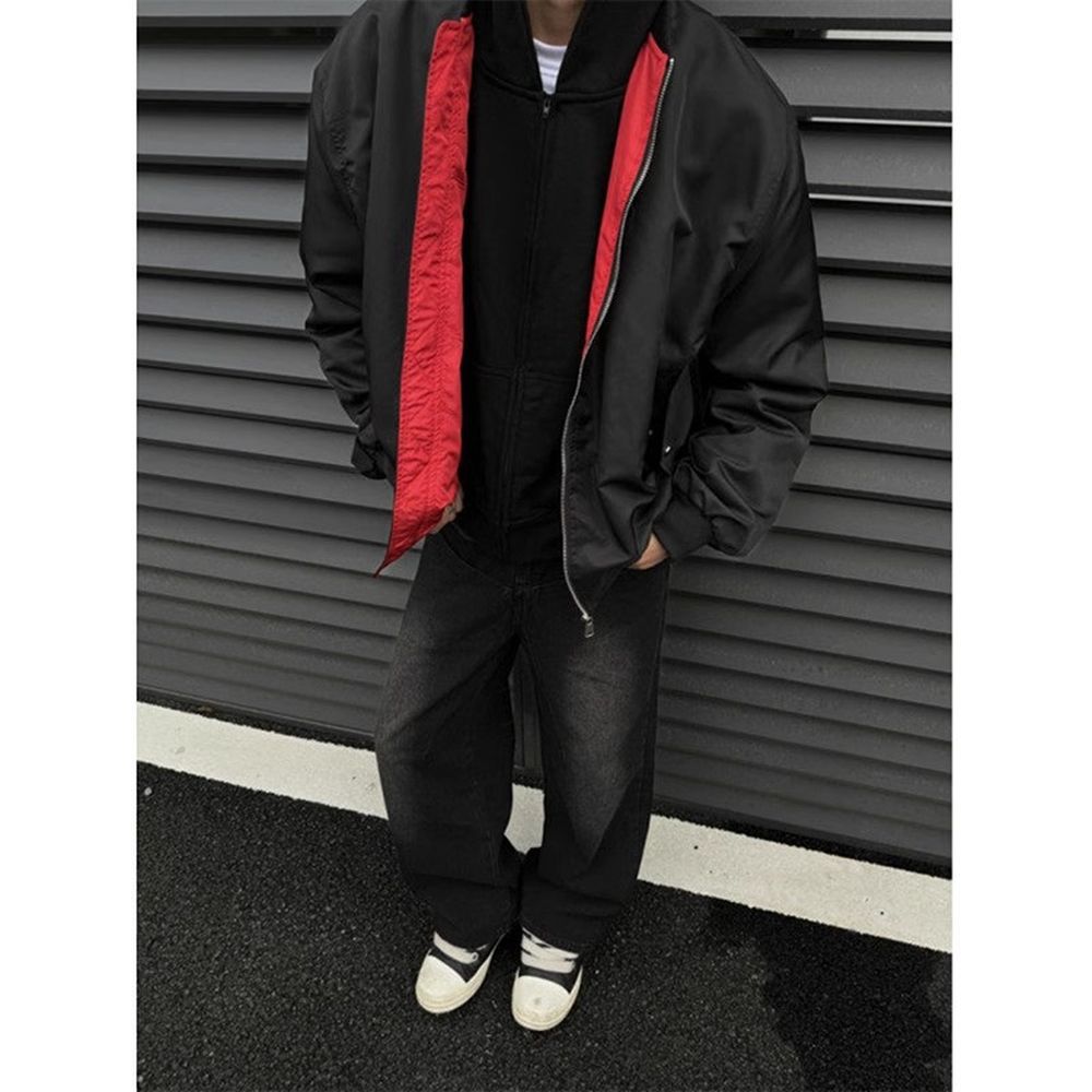 Retro Contrast Color Lining Flight Suit Jacket Thick Coat